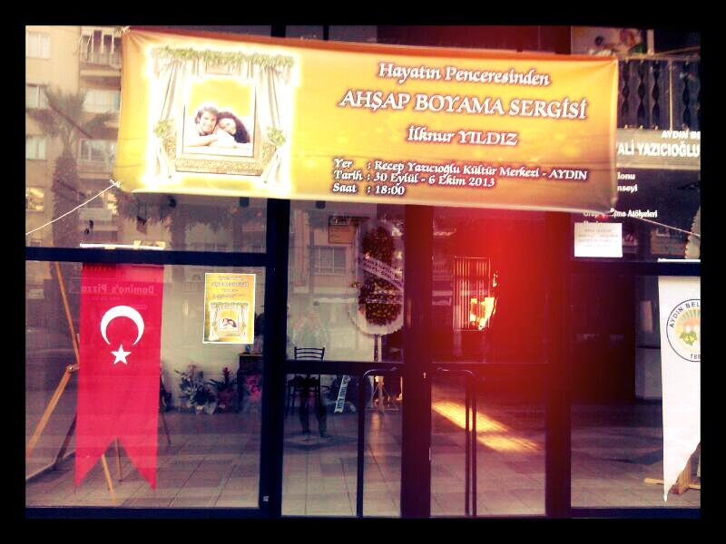 I was passing by the Recep Yazıcıoğlu cultural center.I got interested in İlknur YILDIZ’s wood painting exhibition named window of life before entering into the building I took a photo of the entrance.